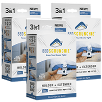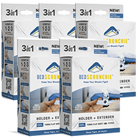 Bed Scrunchie is the patented draw cord and clip system that firmly and easily flattens and secures bed sheets, mattress toppers, or protectors.